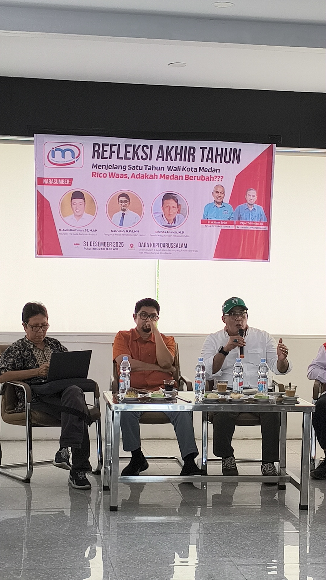 Kegiatan refleksi akhir tahun tersebut ditutup dengan sesi diskusi dan tanya jawab antara peserta dan narasumber. Sejumlah tokoh turut menyampaikan pandangan, di antaranya Ketua GEMMA Sumatera Utara Masdar Tambusai, S.Ag, aktivis hukum Indra Buana Tanjung, SH, serta jurnalis Bambang yang menyoroti isu opsen pajak kendaraan bermotor sebagai salah satu sumber penerimaan daerah.