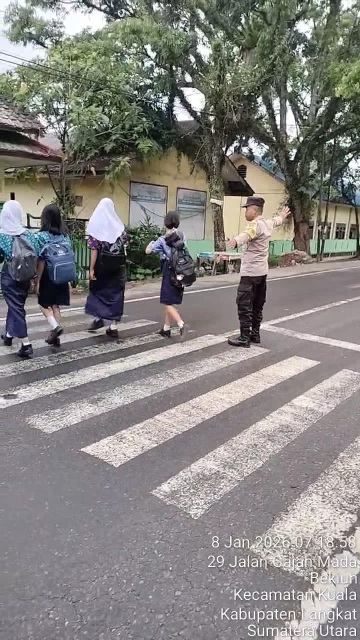 Dalam rangka menciptakan keamanan, keselamatan, ketertiban, dan kelancaran lalu lintas, Bhabinkamtibmas Polsek Kuala Aiptu Samuel Sembiring melaksanakan kegiatan sambang sekaligus pengaturan arus lalu lintas di simpang depan SMP Negeri 1 Kuala, Kecamatan Kuala, Kamis (8/1/2026) pagi.