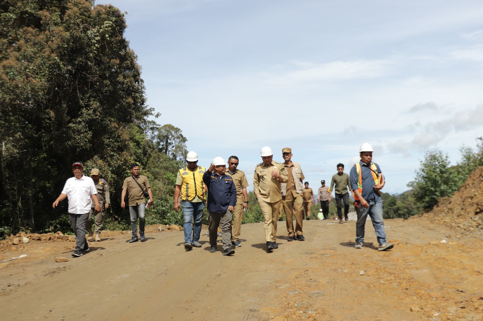 Bupati Pakpak Bharat, Franc Bernhard Tumanggor meninjau pengerjaan Peningkatan Struktur Jalan Penghubung Pakpak Bharat-Dairi pada ruas Sigalingging-Kuta Jungak (batas Pakpak Bharat). Bupati tiba di lokasi, bertemu dengan Kepala UPT Jalan Jembatan Sidikalang, Daud Sembiring, dan Plt Kepala Dinas PUTR Hub Pakpak Bharat, Manotar Silalahi, ST, M.Si yang telah tiba di lokasi lebih dulu.