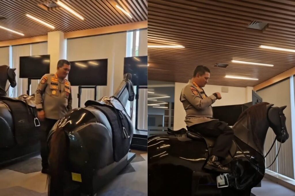Dalam sebuah video yang beredar, anggota Polri menjelaskan bahwa simulator ini memiliki gerakan yang dirancang menyerupai pergerakan kuda asli.