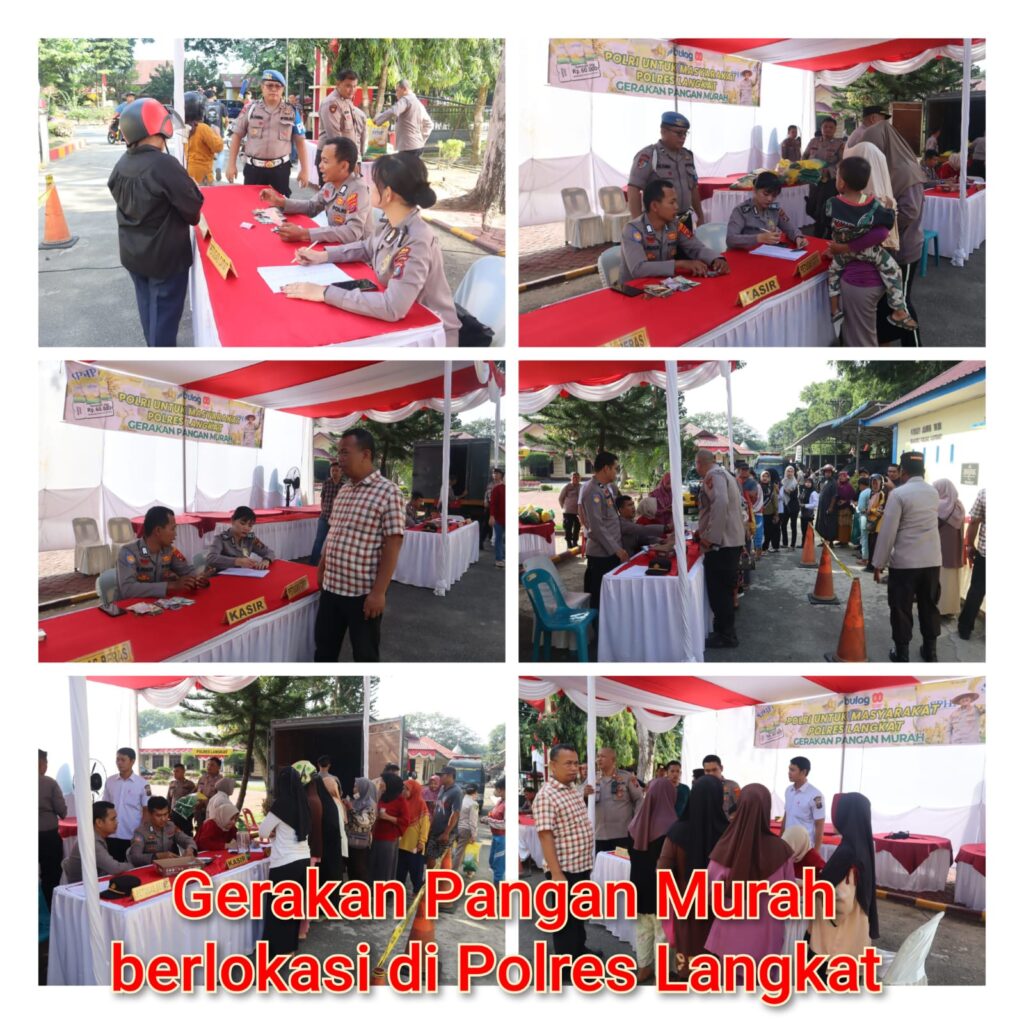Polres Langkat bersama Polsek jajaran menggelar Gerakan Pangan Murah Penjualan Beras Stabilisasi Pasokan dan Harga Pangan (SPHP) pada Rabu, 13 Agustus 2025, mulai pukul 08.00 WIB hingga selesai. Kegiatan ini berlangsung serentak di dua lokasi utama, yaitu Lapangan Bola Voli Alun-Alun T. Amir Hamzah Stabat dan Mako Polres Langkat, serta di 12 titik lain yang tersebar di Polsek jajaran.