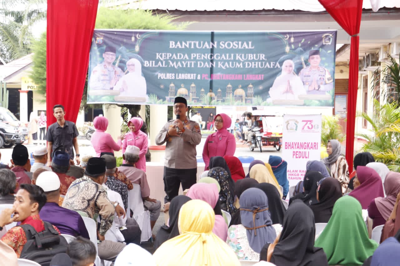 Kapolres Langkat menyampaikan bahwa Polri tidak hanya bertugas menjaga keamanan dan ketertiban, tetapi juga hadir untuk memberikan manfaat sosial bagi masyarakat.