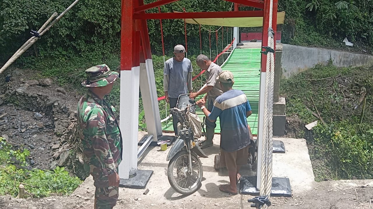 Kodim 0212/TS Bersama Masyarakat Perbaiki Jembatan Gantung di Ulu Pungkut