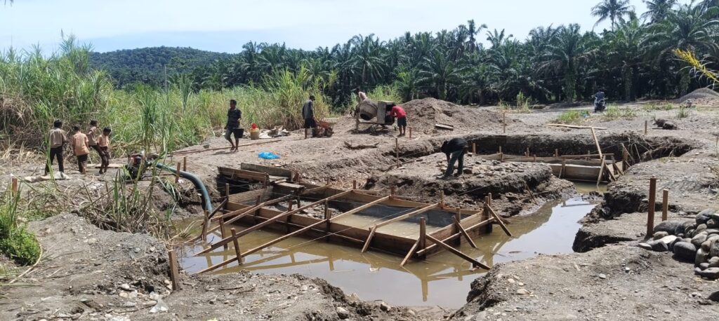 Pengerjaan jembatan dilakukan secara bertahap dengan melibatkan personel Koramil 09/Sosa Kodim 0212/TS bersama masyarakat dan tenaga tukang. Sejumlah tahapan pekerjaan yang telah dilaksanakan meliputi pengecoran pondasi dan blok beton di sisi tepi dekat, pembuatan mal foot plat, perakitan besi, hingga pengecoran foot plat. Saat ini, progres pembangunan jembatan gantung tersebut telah mencapai sekitar persen.