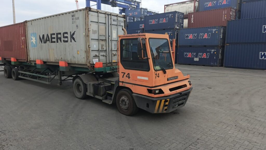 Foto: Armada Truck Internal (ITV) bermerk TERBERG produksi German yang di operasi kan oleh Operator Head Truck PT PDS di Pelabuhan Petikemas Belawan.