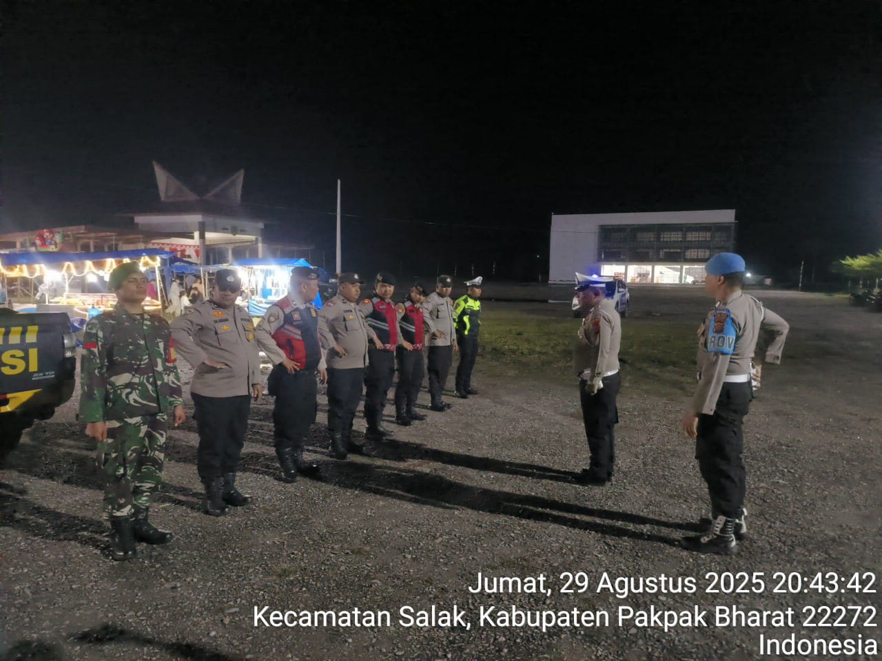 Patroli Gabung / Cipta Kondisi di gelar TNI – Polri guna menciptakan Siskamtibmas yang Kondusif di wilayah Kabupaten Pakpak Bharat. Jumat 30 Agustus 2025 sekira pukul 20.15 s/d 22.30 wib di wilayah Hukum Polres Pakpak Bharat dan Polsek jajaran.