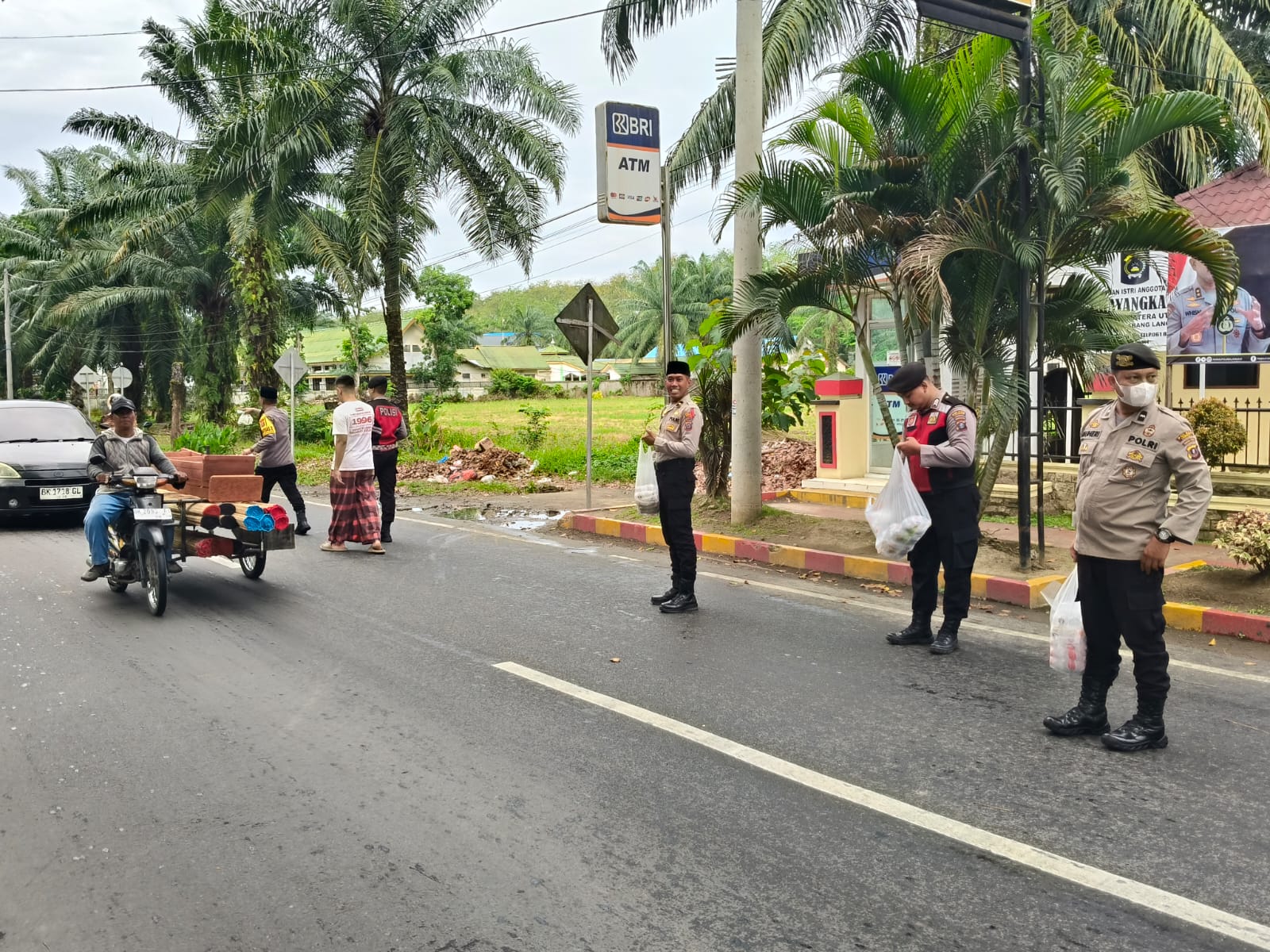 Memasuki hari ke-24 bulan suci Ramadhan 1447 H, Polres Langkat melaksanakan kegiatan bakti sosial dengan membagikan takjil kepada masyarakat, Sabtu (14/3/2026) sore.