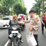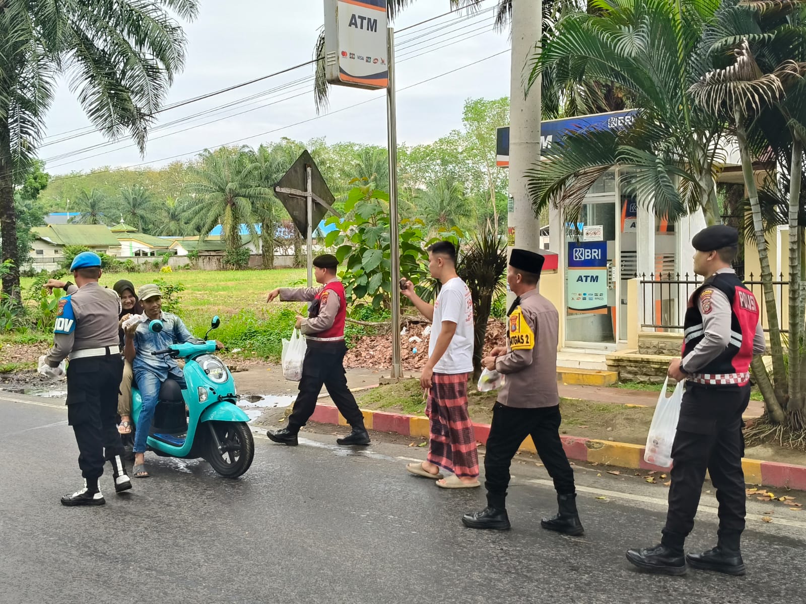 Selain berbagi takjil, personel juga mengimbau masyarakat agar tetap tertib berlalu lintas serta mengutamakan keselamatan selama berkendara.