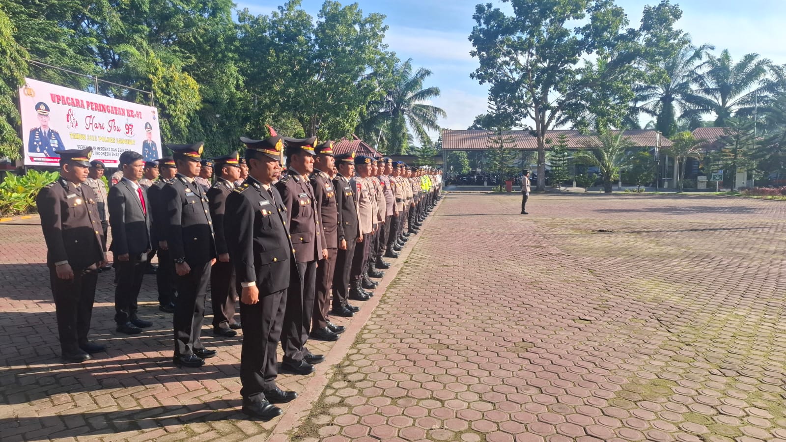 Upacara tersebut diikuti oleh Wakapolres Langkat, para Pejabat Utama (PJU), para Kapolsek jajaran Polres Langkat, para Perwira, Bintara, serta Aparatur Sipil Negara (ASN) Polres Langkat. Bertindak sebagai Perwira Upacara IPDA Mely Bangun dan Komandan Upacara IPDA Ria.