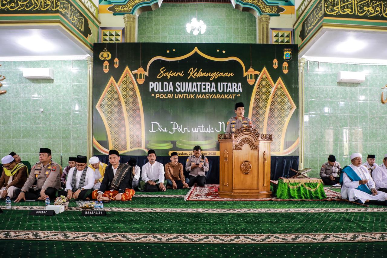 Wakapolda Sumatera Utara, Brigjen Pol. Rony Samtana Tarigan, S.I.K., M.T.C.P., mewakili Kapolda Sumut Irjen Pol. Whisnu Hermawan Februanto, S.I.K., M.H., menghadiri kegiatan Safari Kebangsaan Polda Sumut yang digelar di Masjid Al-Hidayah Polda Sumut pada Kamis (23/10/2025).