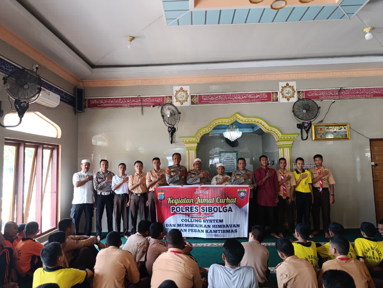 Dalam upaya menjaga dan menciptakan situasi keamanan dan ketertiban masyarakat (Kamtibmas) yang aman serta kondusif di wilayah Kota Sibolga, Polres Sibolga kembali melaksanakan program rutin *Jumat Curhat* pada hari Jumat, 19 September 2025, bertempat di Masjid Jabal Nur, Jalan Dr. Ferdinan Lumbantobing, Kelurahan Huta Tongatonga, Kecamatan Sibolga Utara.