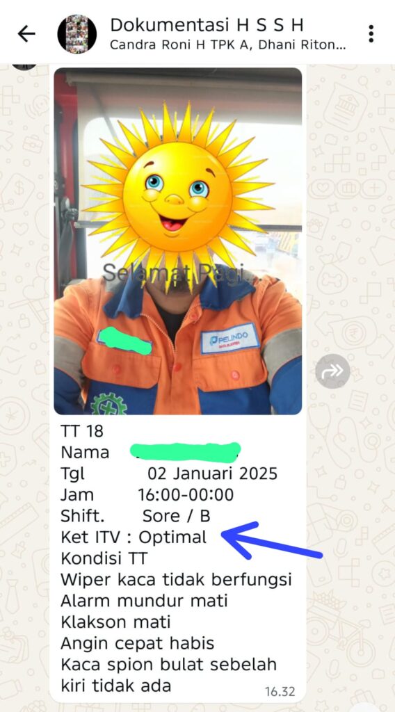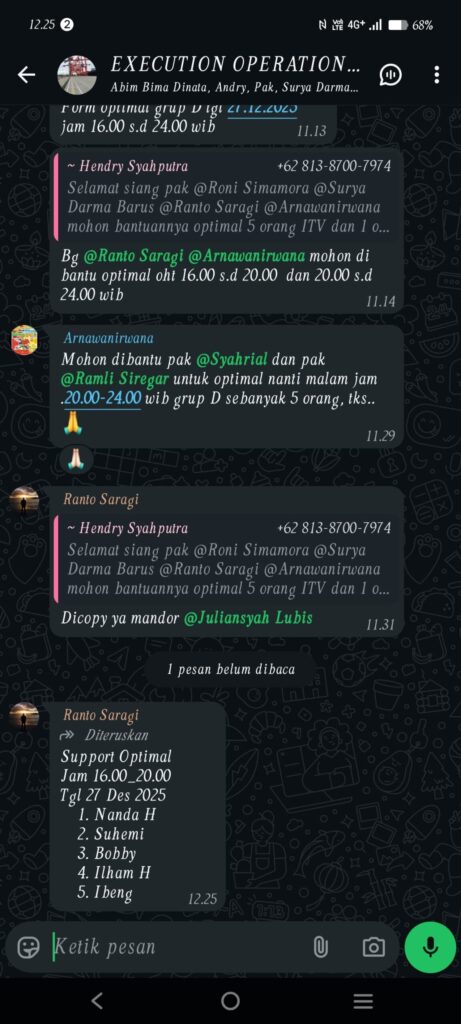Foto: Bukti Screenshot Laporan OHT didalam Grup Gabungan Operasional Setiap Akan Memulai Kegiatan Pekerjaan.