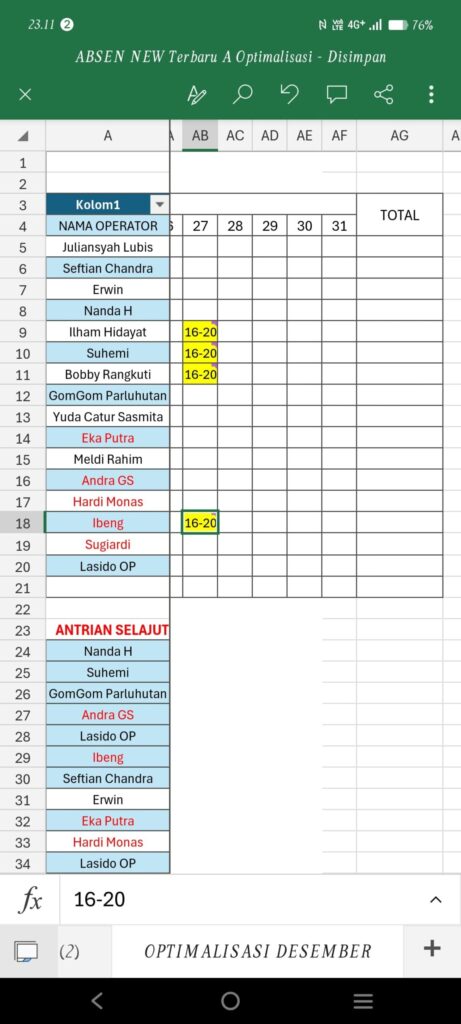 Foto: Bukti Jumlah Operator Head Truck (OHT) Yang Tidak Memenuhi Jumlah Standard Pelabuhan Internasional Namun ditutupi manajemen dengan wajib bergiliran “Optimal”.