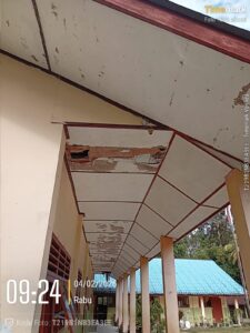 Kondisi fasilitas pendidikan di UPT SMP Negeri 030 Purba Baringin, Kecamatan Pakkat, Kabupaten Humbang Hasundutan, menjadi sorotan setelah dokumentasi kondisi bangunan dan lingkungannya beredar pada hari ini. Foto-foto yang diperoleh menunjukkan bagian atap gedung sekolah mengalami kerusakan signifikan, dengan plafon beton yang roboh dan struktur kayu penyangga terlihat terbuka secara jelas.